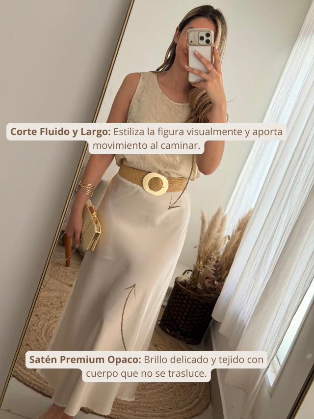 La Falda París combina una textura satinada suave con un brillo sutil. Su diseño fluido ofrece comodidad y feminidad en cada paso, con la tranquilidad de que es una prenda de calidad que no se trasluce.